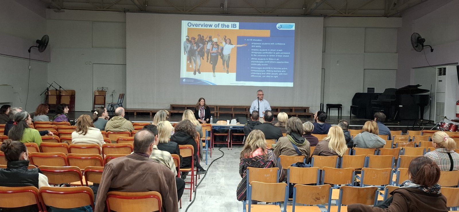 Η κ. Κ. Μ. με συνεχή και βαθιά εμπειρία στο Diploma Programme του IB από το 1993 ως εκπαιδευτικός και ως στέλεχος και Σύμβουλος Πανεπιστημίων από το 2000, παρουσίασε αναλυτικά τη δομή, τη λειτουργία και τις απαιτήσεις του Προγράμματος, στο πλαίσιο της συμβολής της στην ένταξη του IB στη δημόσια εκπαίδευση ως Σύμβουλος του ΙΕΠ. Η κ. Κ. Μ. μίλησε σε γονείς, μαθητές και μαθήτριες του σχολείου μας σχετικά με τις διαδικασίες και το χρονοδιάγραμμα εισαγωγής σε Πανεπιστήμια του εξωτερικού.